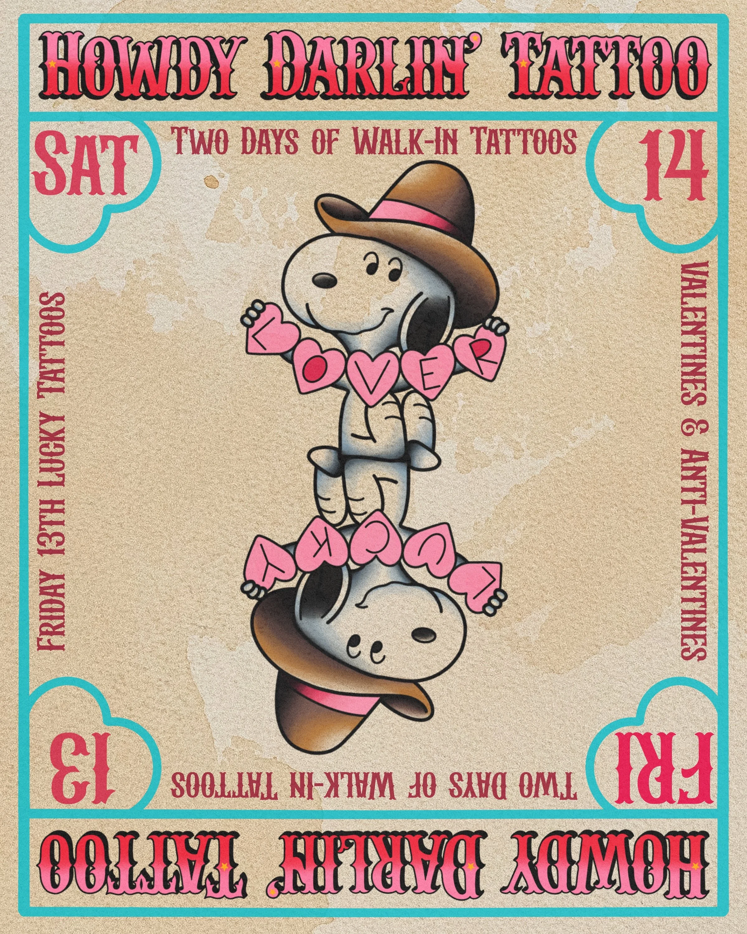 We love a fun event at Howdy Darlin’! From walk-in flash days to tattoo conventions, arts and craft evenings and seasonal events, we’ve always got something in the calendar.