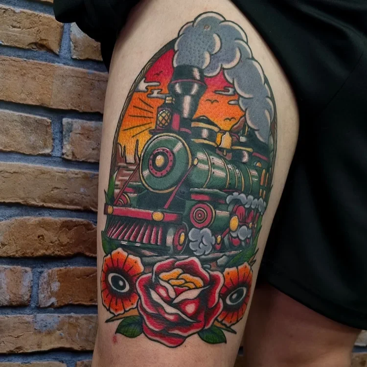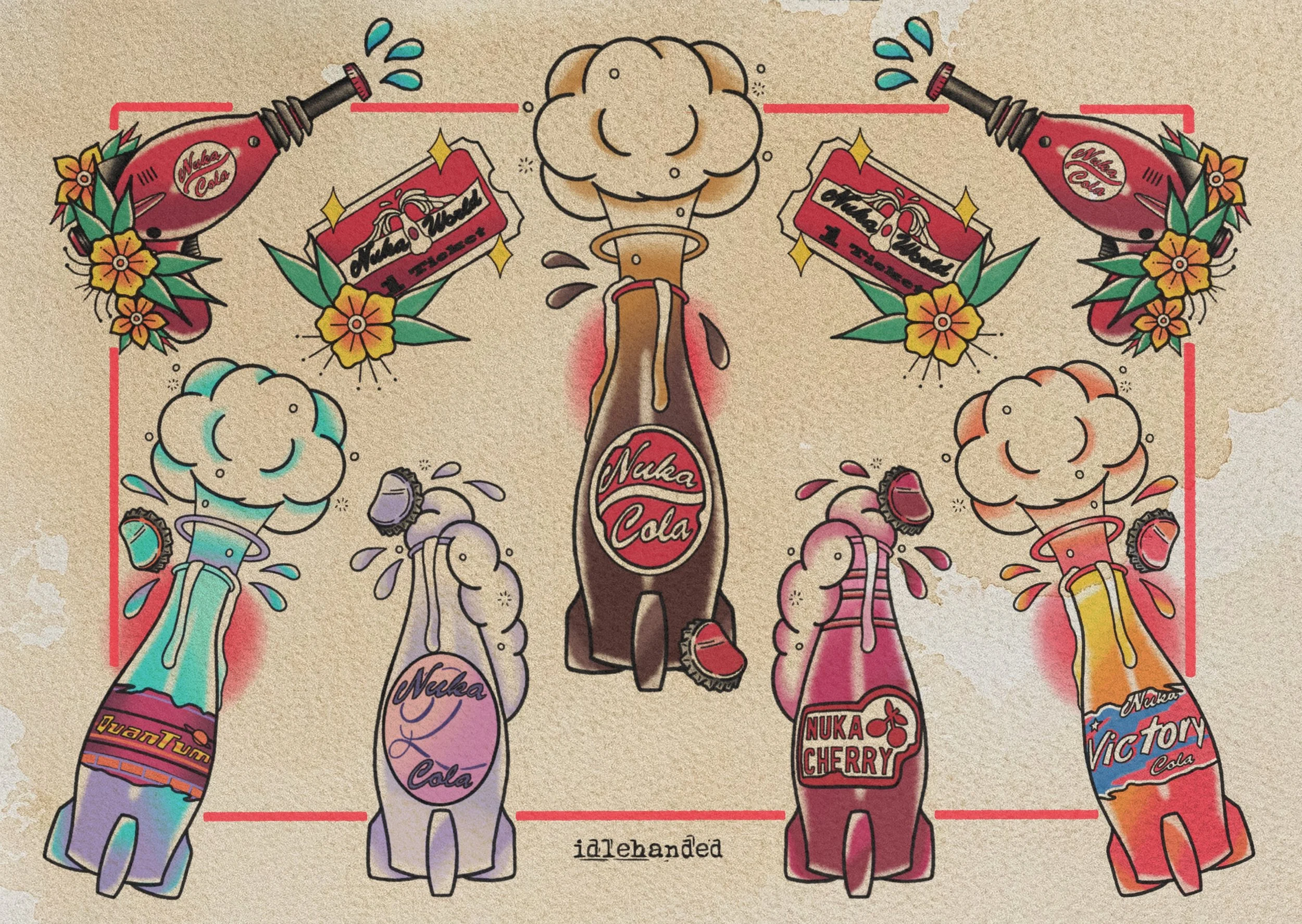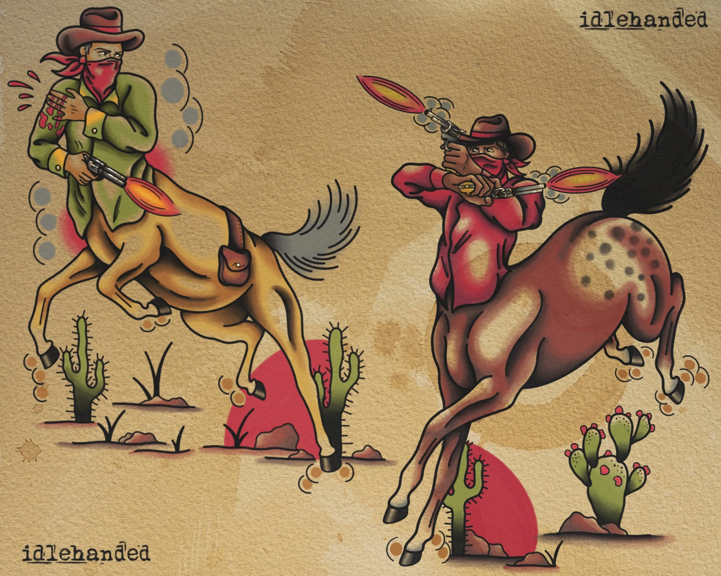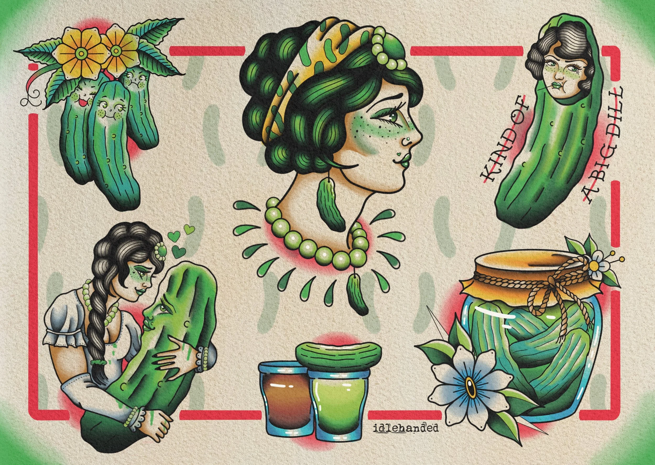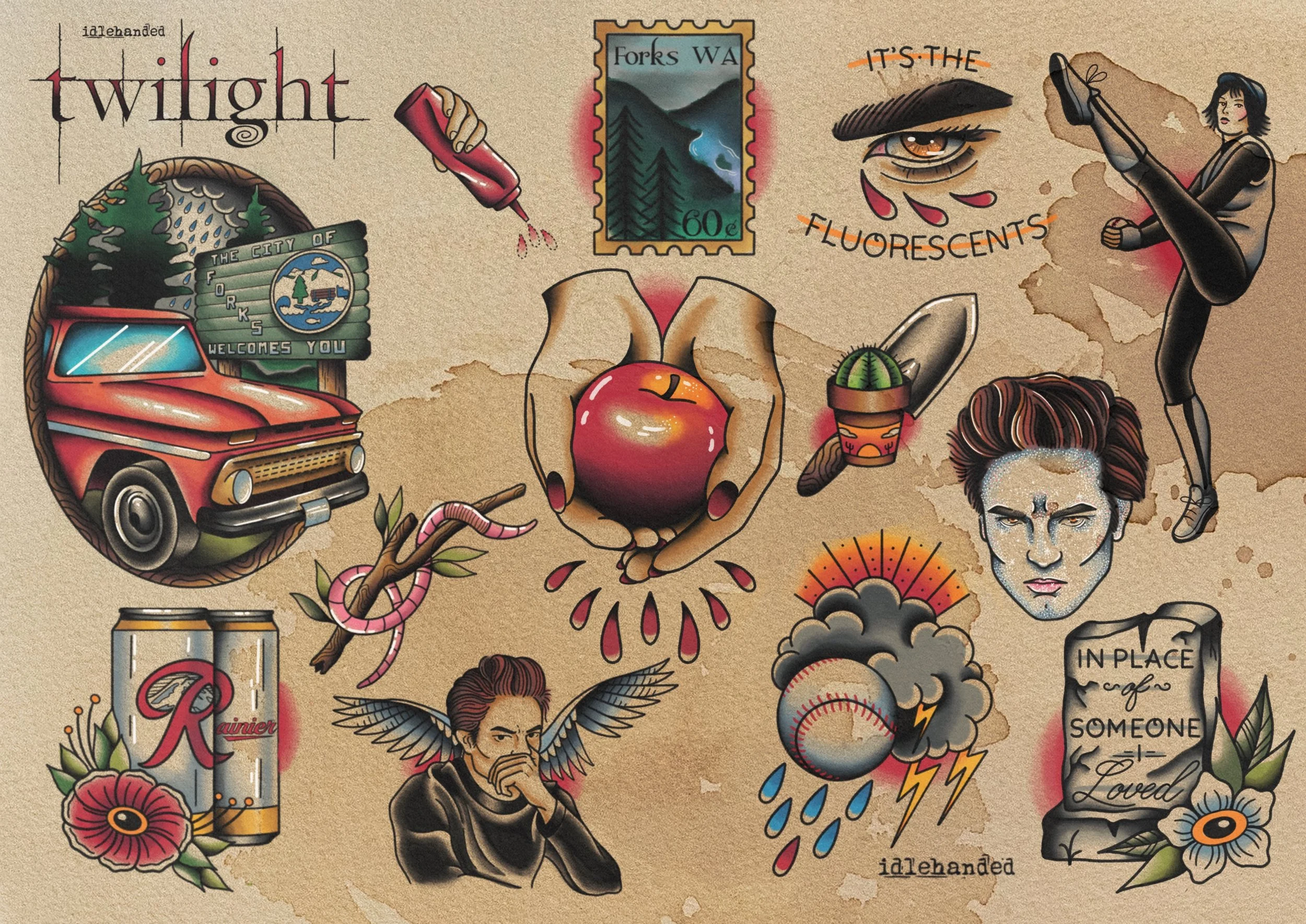 My work is somewhere in between American Traditional and neo-traditional tattooing styles; essentially, I use bold lines and lots of pink. My flash is inspired by video games (get me talking about Fallout or Red Dead Redemption!), old cartoons, nostalgia, and music. I’m a 90s kid who grew up emo, and it shows!